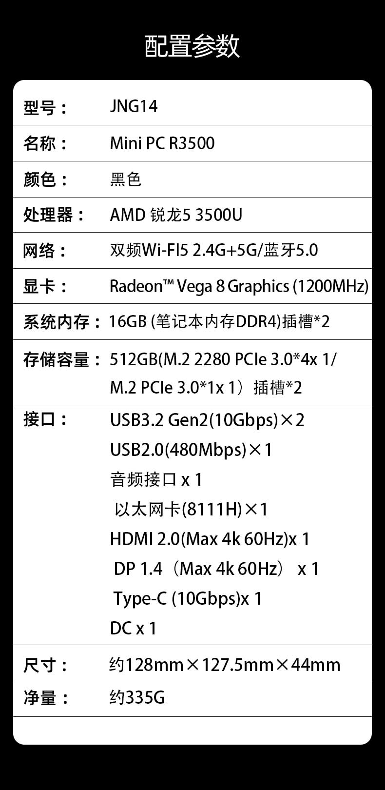 mini PC 锐龙 R5-3500U